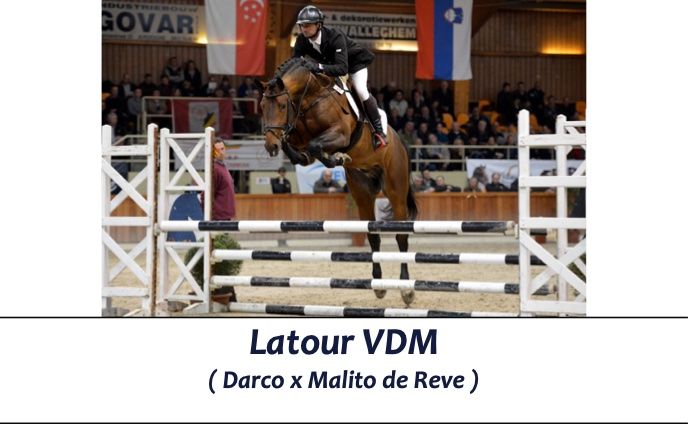 Latour VDM parece ter tudo para fazer a diferença no esporte e na criação em um futuro próximo. Antes de tudo, Latour sagrou-se campeão do Show de garanhões do studbook BWP , graças à sua excelente conformação e sua poderosa maneira de saltar. O poder e o scope ele herdou de seu pai, Darco, que se tornou sétimo com Ludo Philippaerts nos Jogos Olímpicos de Barcelona em 1992 e mais tarde se tornou um espetacular garanhão permanecendo no topo do ranking de garanhões do WBFSH por anos. A mãe de Latour , Everlychin de la Pomme traz os genes de Cumano através de seu pai Malito de Rêves e a própria Everlychin pulou a nível de GP com Shane Sweetnam ainda muito nova. Além disso, Everlychin já produziu outro campeão do BWP: Kasanova de la Pomme. A avó Werly Chin de Muze saltou a provas de 1,50m com Angelie von Essen e é filha da lendária égua Qerly Chin.
