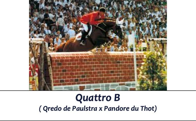 Quattro B produziu vários filhos que saltaram a nivel internacional como Quanta Costa com Beat Mändli, Suzie Quattro e Luciana Diniz , Roxanne com Alexander Schill, Quichotte com Johannes Ehning e Queeno com Mario Stevens.