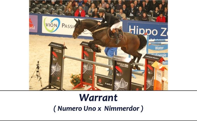 Warrant vem de uma linhagem comprovada. Seu pai, Numero Uno, é filho do garanhão referência Libero H. Numero Uno prova sua qualidade nos concursos de alto nível e passa issonpara seus descendentes. Além de talento para o salto, seus filhos também pontuam pela beleza.